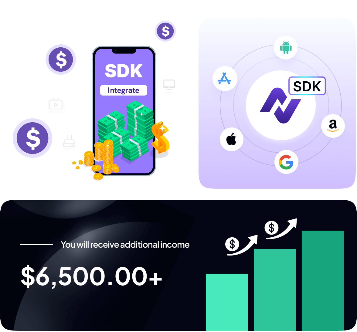 NovadaSDK is a software library that provides a new way to monetize your apps and games on iOS, Android, and web platforms. By integrating NovadaSDK, you can earn revenue for every active user in Novada’s ecosystem.