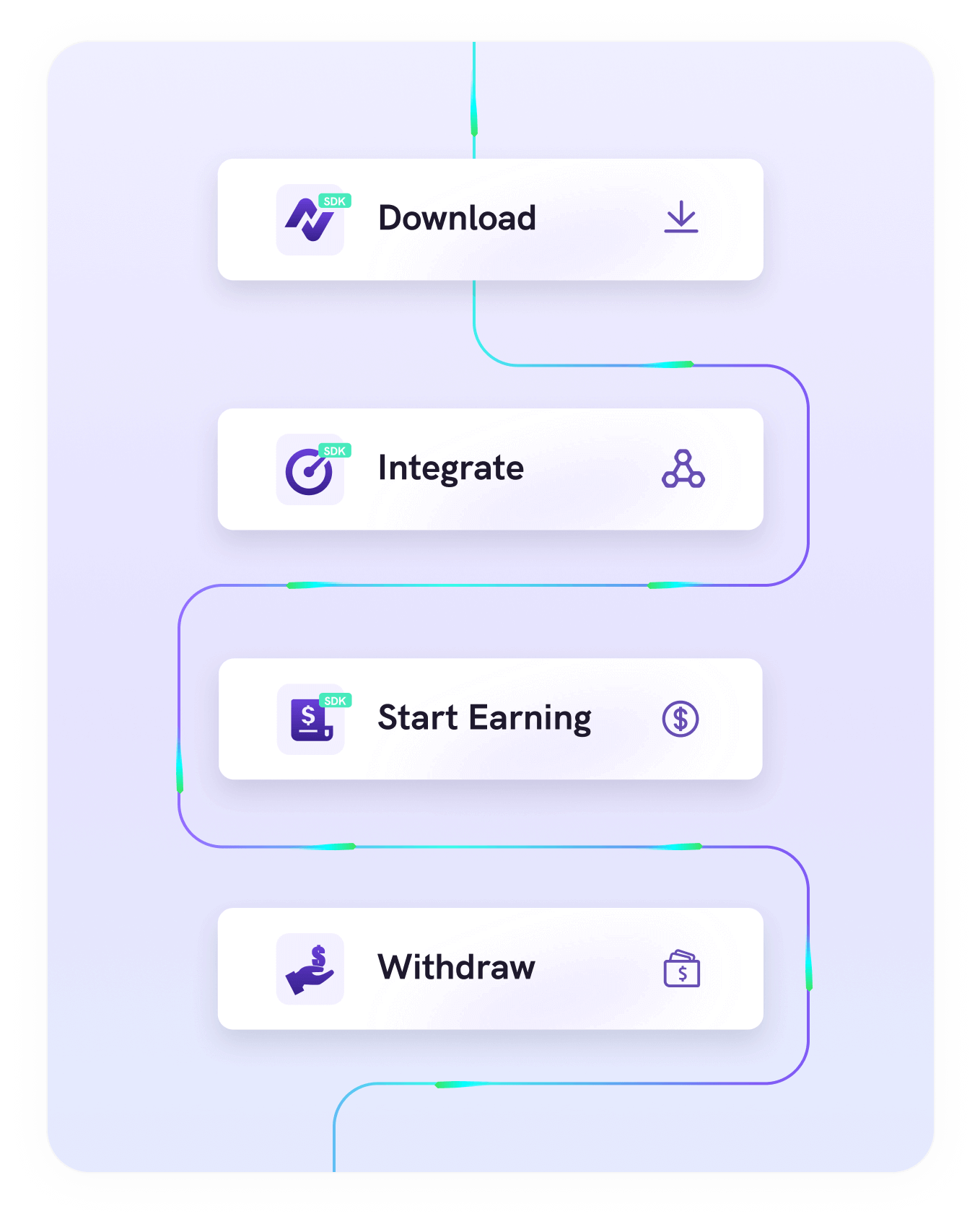Start earning the moment the SDK is integrated. Generate revenue even when users are not actively using your app. Passive income that keeps flowing.